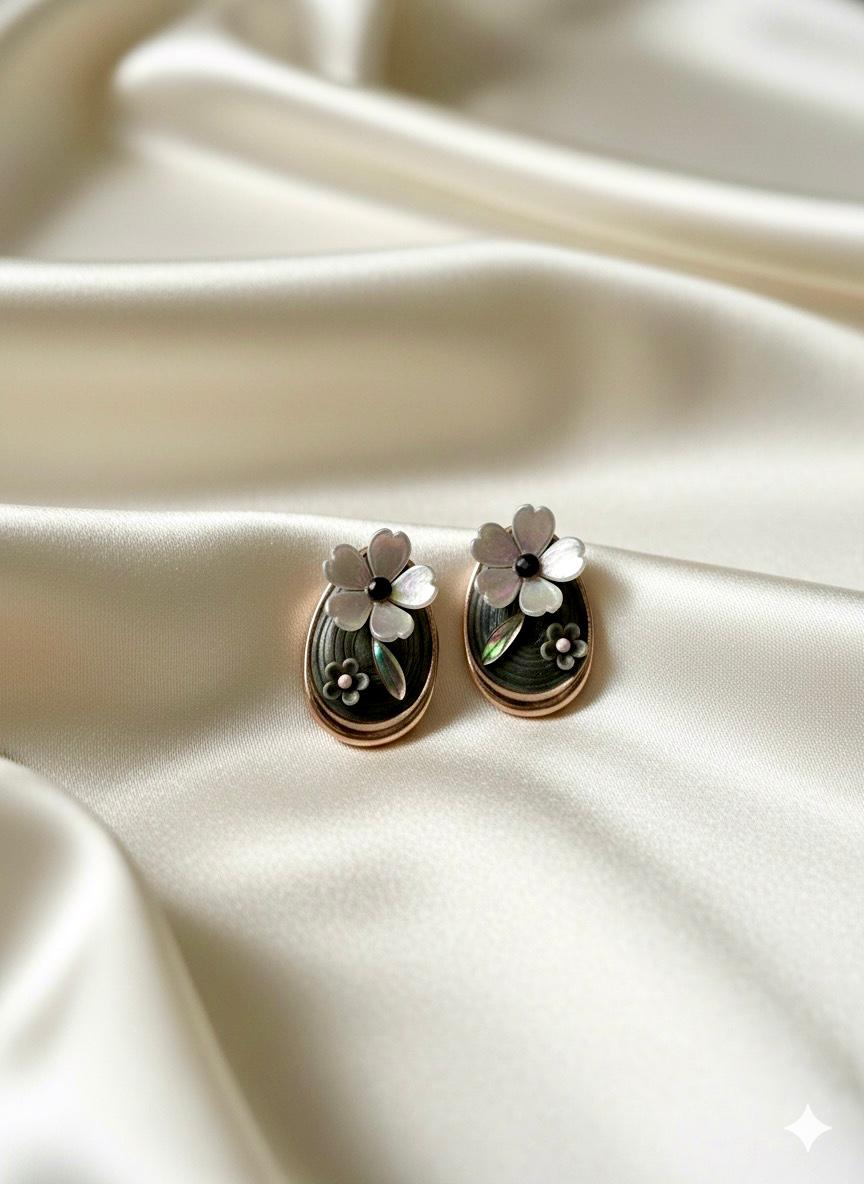 Rose Gold-Plated Crystals Studded Oval Shaped Half Hoop Earrings