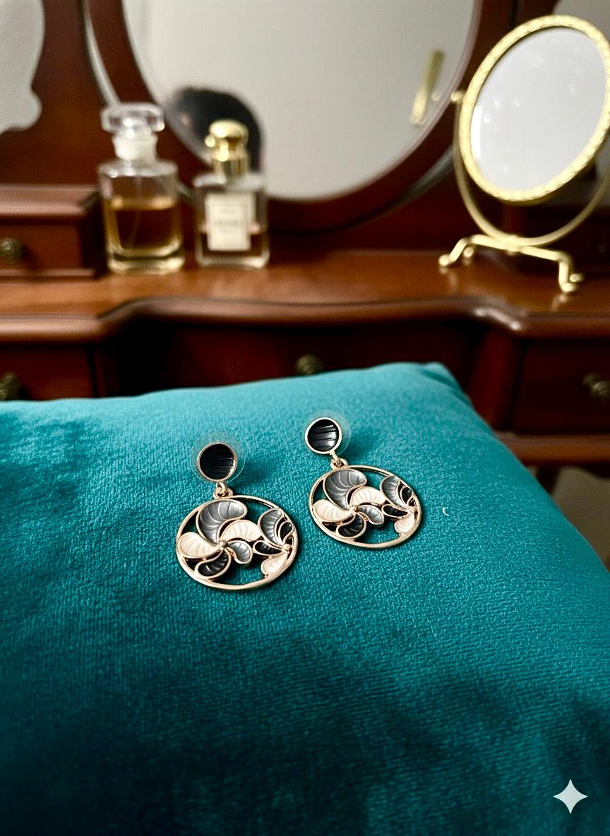 Step into timeless elegance with our Midnight Swirl Earrings. Designed with a mesmerizing swirl pattern in deep black and soft gold tones, these earrings exude sophistication and modern charm. The circular silhouette adds balance and grace, making them a perfect accessory for both day and evening wear.