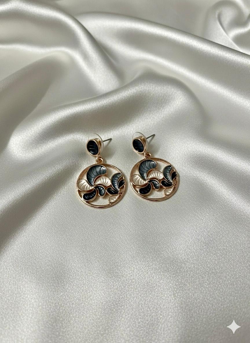 Crafted with precision and finished with a glossy enamel touch, these earrings capture the beauty of flowing motion — elegant, mysterious, and effortlessly chic.