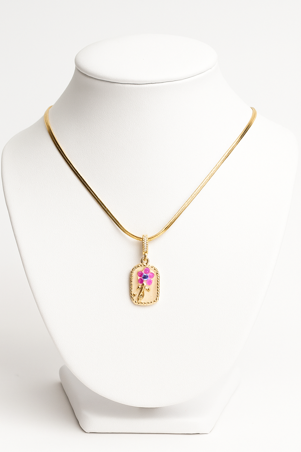 Pink Flower Snake Gold Necklace